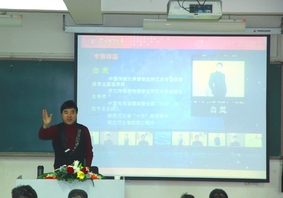 3月24日下午,河北电视台播音部副主任白岚老师的“励志 勤奋 生存”学术讲座在北校区2教101教室隆重举行,白老师生动幽默的口语表达和极具个性的人格魅力,赢得在场专业老师和同学们的阵阵掌声和热烈称赞。