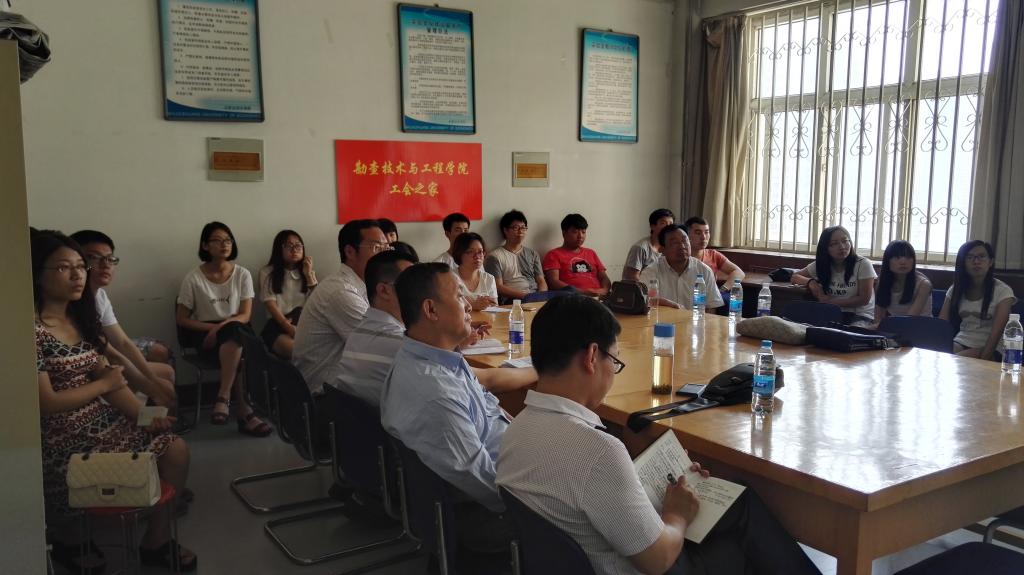 2016年6月21日,中国地质调查局水文地质环境地质调查中心查恩来博士应邀来beat365勘查技术与工程学院进行了学术交流活动。