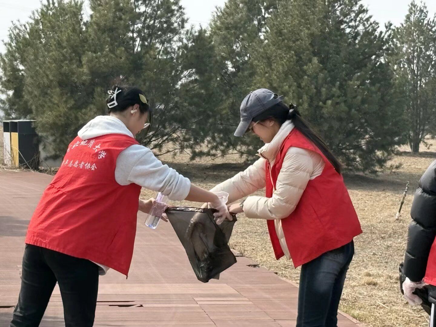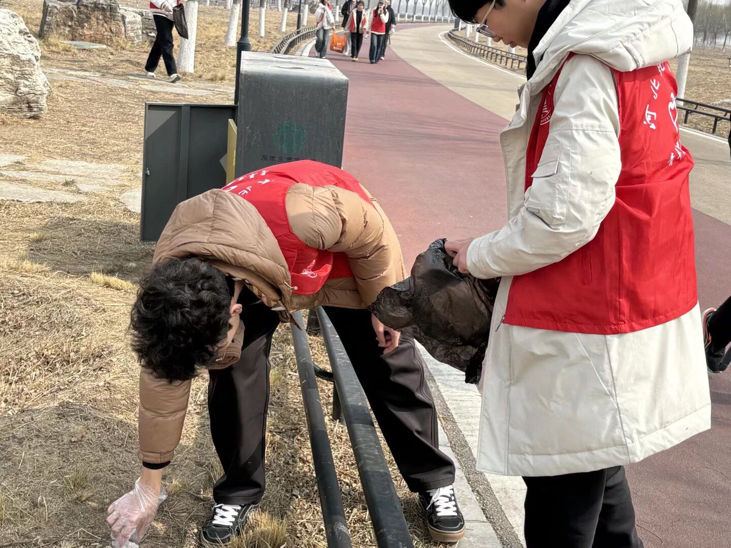 行进过程中,志愿者手持垃圾钳与环保袋,对河岸步道、绿化带及亲水平台的烟头、塑料包装等废弃物进行细致清理与分类清运。此次环保实践将徒步运动与环保公益深度融合,让青年学子在行走滹沱、服务自然的过程中,涵养生态理念、锤炼责任担当,进一步深化了对雷锋精神时代内涵的理解,充分展现了地大学子昂扬向上、甘于奉献的青春风采。