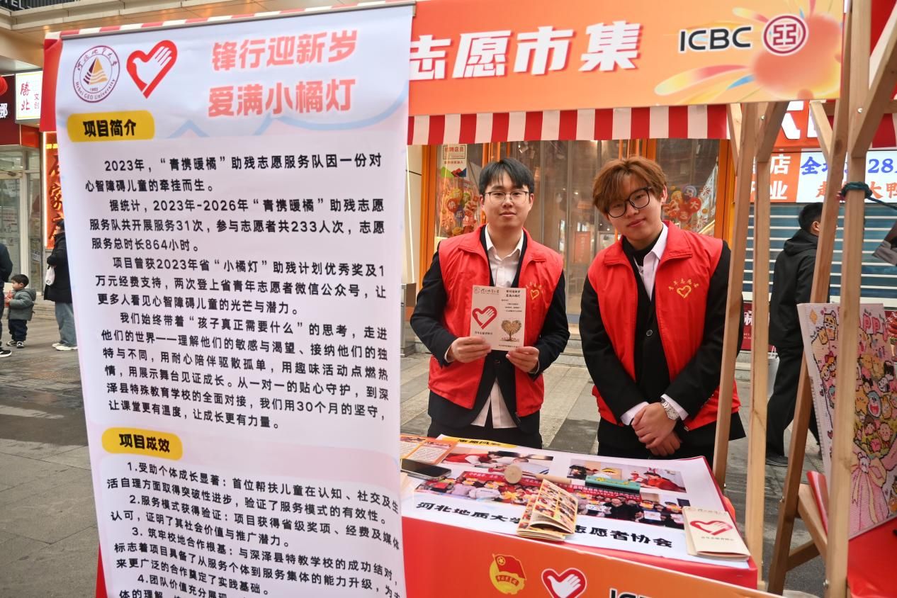 3月5日上午,由共青团石家庄市委主办的“青年友好,志愿先行”学雷锋志愿服务主题日活动在湾里庙步行街举行,英国beat365官方网站青年志愿者协会“小橘灯助残”与“绿色滹沱河”两大品牌志愿服务项目受邀参与。