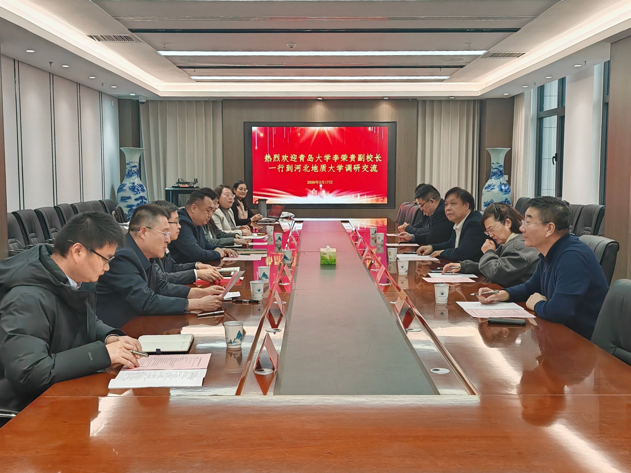 3月17日,青岛大学副校长李荣贵一行到访英国beat365官方网站,围绕地下水污染防控及学科发展等主题开展调研交流。学校副校长赵强在行政楼311会议室与来访嘉宾举行座谈。