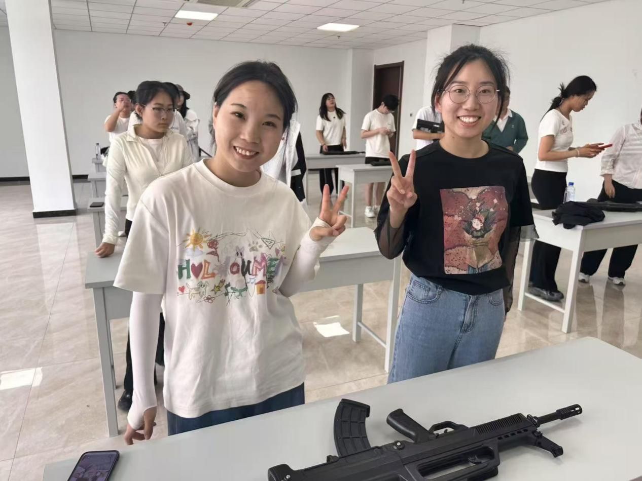 在国防教育基地,师生们进行了沉浸式学习。全体学员聆听了“人民的军队”音乐国防课,生动的讲解、感人的事迹让许多师生热泪盈眶,深刻体会到“岁月静好是有人负重前行”的真谛;师生们还近距离观摩59式坦克、歼-7B战机等真实装备,体验火箭筒发射,直观感受我国国防科技的跨越式发展;在教官指导下,学员们分组进行枪支拆解实操训练,两名学员以37秒的优异成绩荣获野战军帽奖励。