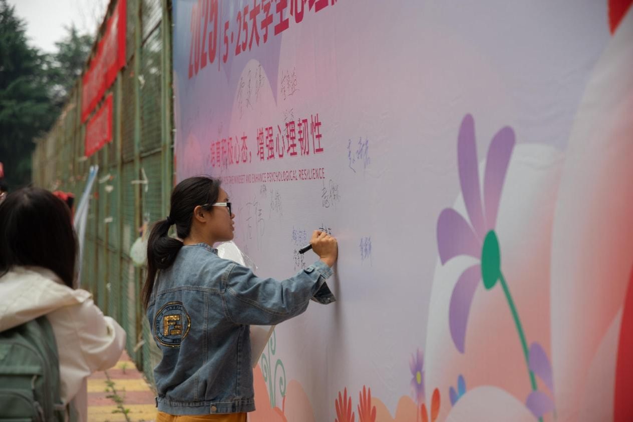 在“万人签名”活动中,现场邀请beat365学生在签名墙上签名,并宣传本次活动的主题“培育积极心态、增强心理韧性”,引导广大学生积极关注自己和他人的心理健康状况,提升心理健康水平,注重身心健康全面发展。