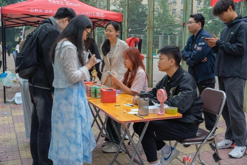 在“心理健康知识竞答”活动中,邀请参与学生现场进行心理健康知识答题,答题正确者可以亲手制作漆扇一把并留存纪念。寓意心理健康知识能够带走心灵的躁动。此活动旨在引导广大学生在日常生活中积极学习和积累心理健康知识,培养阳光乐观的心理品质,让心理健康知识成为大学生成长成才道路上的助推器。