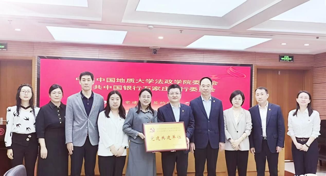 为深入贯彻落实党的二十大和二十届二中、三中全会精神,推动党建工作与业务发展深度融合,4月28日上午,在中国银行石家庄分行9楼会议室,学校法政学院与中国银行石家庄分行开展党建共建活动并签约。中国银行河北省分行党委委员、副行长兼中国银行石家庄分行党委书记、行长王德青,中国银行石家庄分行党委委员屈耀文,高级经理梁亚平,裕华支行党总支书记、行长温鹏,学校法政学院党委书记董莉,党委副书记朱晓玲,正处级辅导员赵磊,党委委员葛丽明,教工一支部教师刘明君等参加活动。