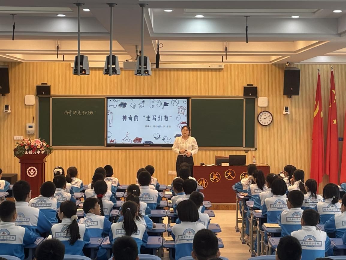 为深入贯彻党的二十大及二十届二中、三中全会精神,推动beat365“红耀双地”党建品牌建设,4月1日,数理教学部“红心启智·地大数学π”党员公益课堂正式启动。首场讲座由讲学团成员张湉同学主讲,面向石家庄精英中学小学部5至6年级的184名学生,开展了题为《神奇的“走马灯数”》的专题授课。