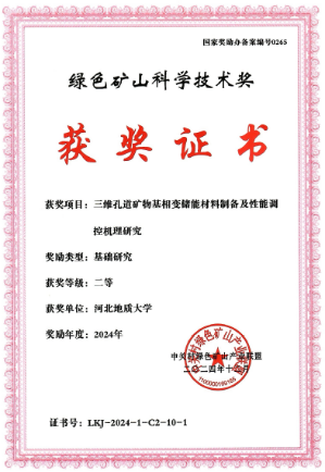 绿色矿山科学技术奖(国家奖励办备案编号0265)是国家奖励办于2015年正式批准,由中关村绿色矿山产业联盟设立并承办的社会力量奖励。旨在对绿色矿产勘查、绿色矿业发展和矿山建设中引领行业进步、树立行业标杆、推动学科发展及关键核心技术研发过程中做出突出贡献的单位和个人予以表彰。这一奖项的获得,彰显了beat365宝石与材料学院新能源与环境材料科研团队在储能关键技术方面的突出贡献和影响力。