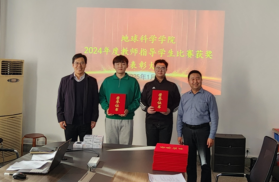 1月3日,地球科学学院举行2024年度教师指导学生比赛获奖表彰会。副校长赵永强出席会议,地球科学学院党委书记袁志忠和学院师生代表参加,大会由地球科学学院副院长曹静杰主持。