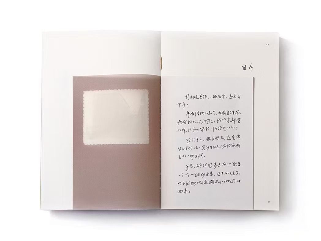 《抱朴集》装帧设计呈现了书籍质朴气息,字体、版式、纸张、印刷、装订等细节上传递出特有质朴感,达到外在与内涵的统一。作者的手稿有用“八行书”信纸书写,于是采用“八行书”的行格与书籍开本在尺度关系上推敲出适宜现代阅读的版式。书的《自序》中,暗含了一条讲述作者个人回忆的时间线,便设计成了有着作者个人记忆的袖珍黑白相簿,使读者翻阅时的视觉流线可以和作者回忆的时间线重合,产生和作者、和那个时代的记忆共鸣。封面作者手书采用压凹工艺,寓意回忆如印迹隐约浮现。