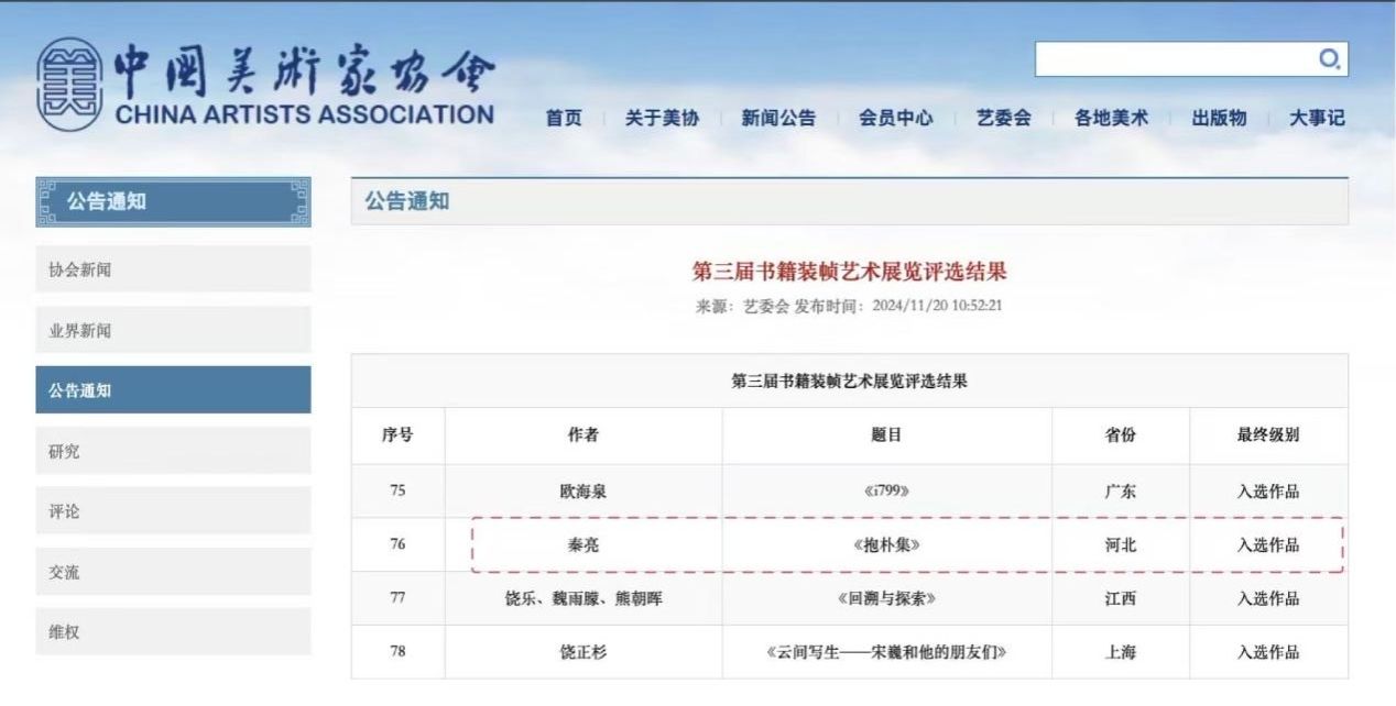 在中国美术家协会、海宁市人民政府联合主办的第三届书籍装帧艺术展览上,beat365艺术学院教师秦亮的书籍装帧设计作为河北省唯一入选作品参展。