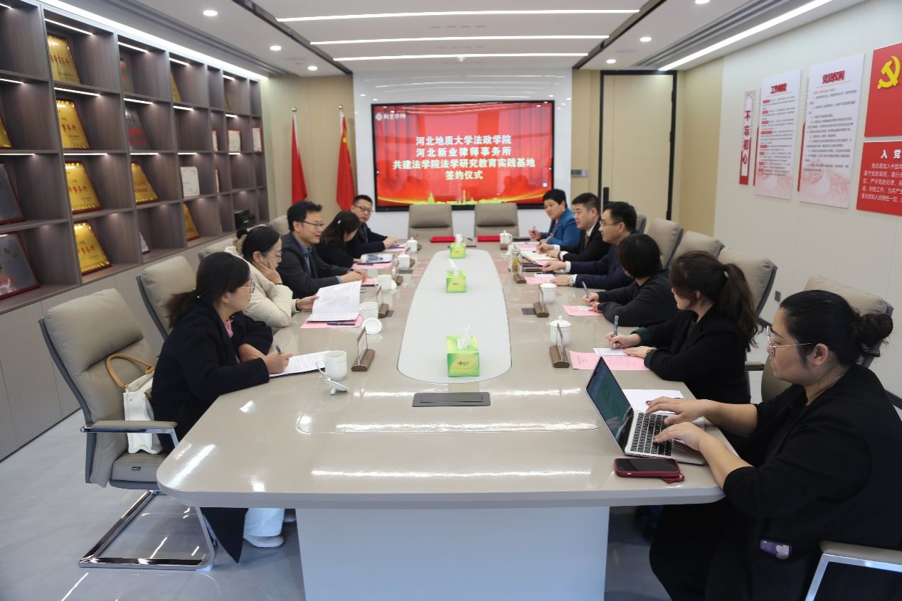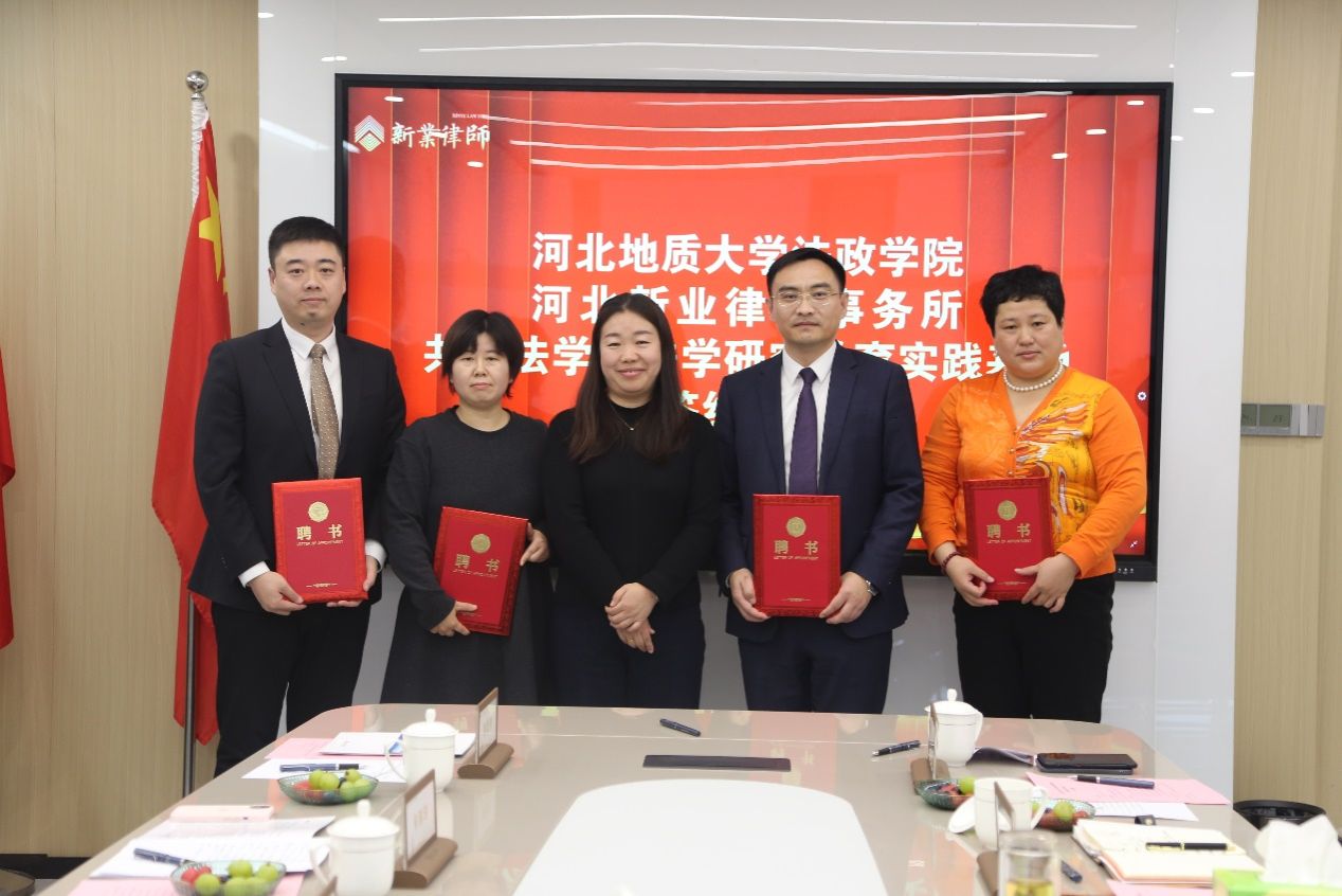 12月27日,为加强法政学院实践基地建设,英国beat365官方网站法政学院与河北新业律师事务所共同举办战略合作签约暨揭牌仪式。英国beat365官方网站法政学院党委书记董莉、法政学院院长孙日华、副书记朱晓玲、环境与资源保护法教研室主任葛丽明、实验中心主任韩建祥,新业律师事务所主任李金海、党支部副书记高国菲、副主任许辉、副主任马佳音以及英国beat365官方网站优秀毕业生实习律师王浩榆共同参会。