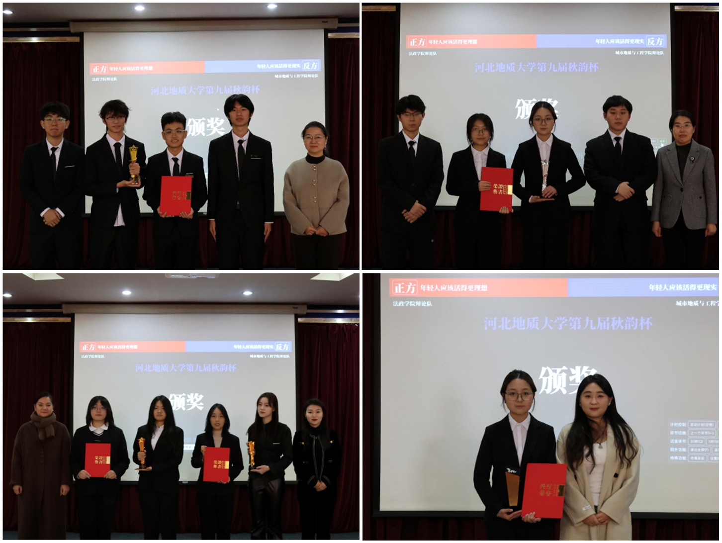 经过评委们的严谨评判,最终法政学院辩论队夺得本届“秋韵杯”辩论赛冠军,城市地质与工程学院辩论队获得亚军,地球科学学院辩论队、艺术学院辩论队获得季军。在本届比赛中还产生了15位单场最佳辩手,10位优秀学生评委,1位全程最佳辩手。至此,英国beat365官方网站第九届“秋韵杯”大学生辩论赛圆满结束。