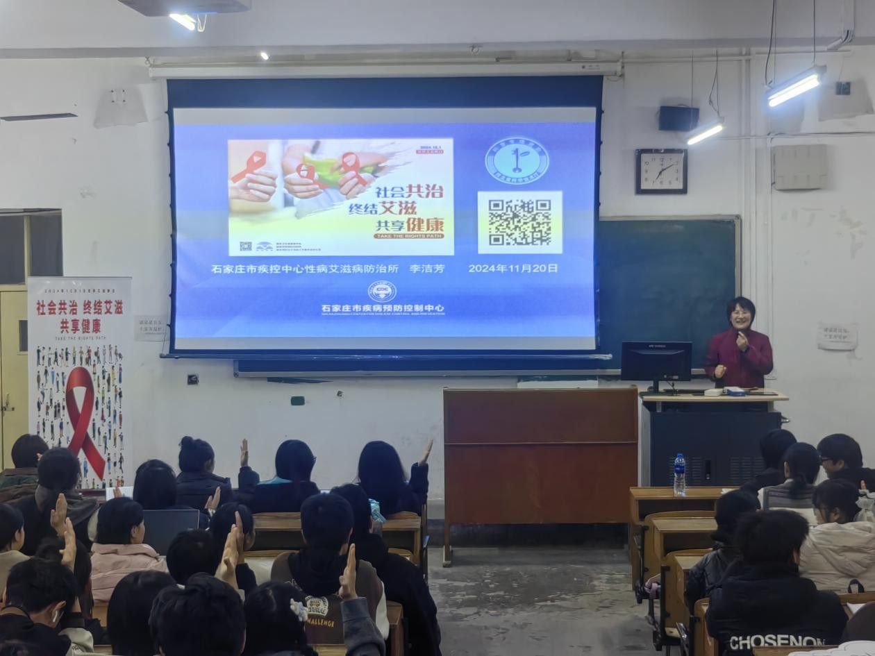 11月20日和11月26日,后勤管理处校医院诚邀石家庄市疾控中心性病艾滋病防治科科长李洁芳分别在校本部和新校区,对宝石学院和管理学院师生进行科普艾滋病相关知识,倡议师生共同行动,了解艾滋病的危害,参与艾滋病防治答题有奖活动,活动免费发放防艾宣传资料和病毒检试剂盒等,同学们积极参与现场氛围十分热烈。