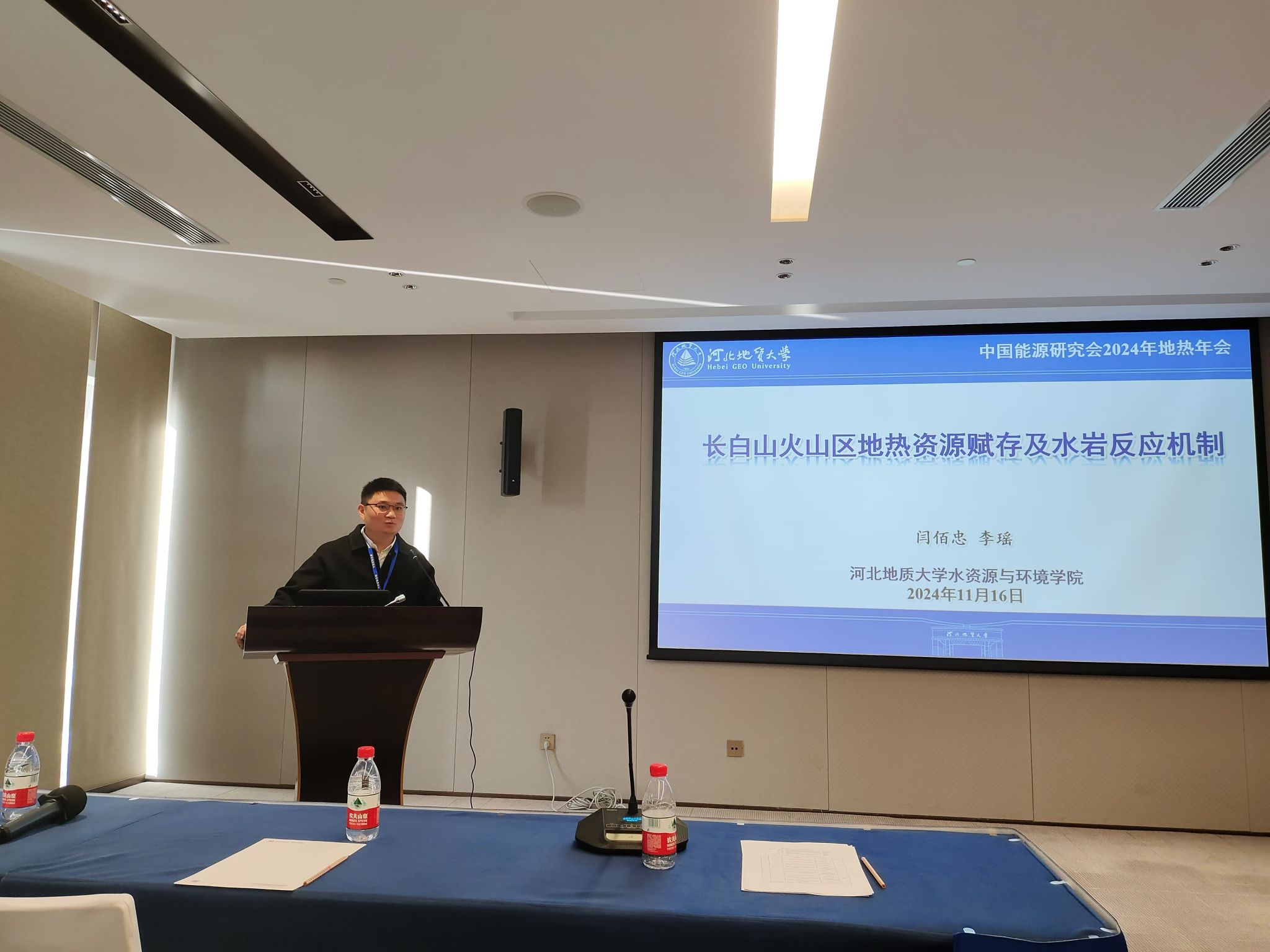 本次年会有1场大会特邀报告、9场主题专场报告,专家学者们聚焦“地热资源评价”、“地热资源综合利用”、“浅层地热能”等领域的最新研究成果,探讨地热开发过程中面临的重大科学技术问题,促进地热能产业有规模有效益高质量发展。beat365陈康副教授为分会场一“地热资源评价”的召集人,刘昭副教授为分会场五“地热资源综合利用”的召集人。beat365闫佰忠教授作了“长白山火山区地热赋存及水岩反应机制”的学术报告,研究生张永成、郑亚东、韩思航分别围绕地热水成因及开发利用作了题为“西藏错那地热田地热流体物源分析研究”、“基于水化学特征及同位素对日喀则典型地热水成因研究”和“西藏昌都左贡典型医疗矿水成因机理及开发利用研究”的学术报告。