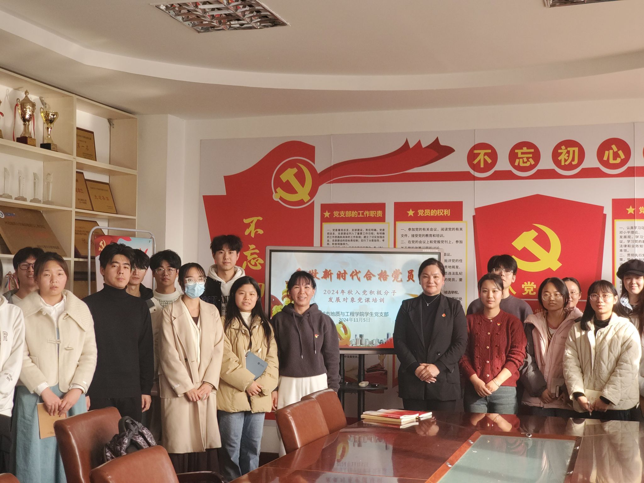 根据校党委组织部相关通知要求,结合城市地质与工程学院实际情况,学院党委精心组织安排,于11月5月—11月12日开展了2024年秋季入党积极分子、发展对象党课培训系列活动。旨在进一步加强和提升党员发展工作,提高入党积极分子和发展对象的思想政治素质,引导他们坚定理想信念,积极向党组织靠拢。