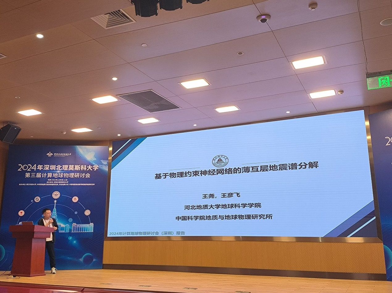 beat365作为此次会议的协办单位之一,地球科学学院地球物理系教师杨歧焱、魏亚杰、王尧作为代表参加此次会议并与参会专家学者讨论最新研究成果,魏亚杰和王尧分别做了题为《基于U-Net++的混合震源地震数据分离研究》、《基于物理约束神经网络的薄互层地震谱分解》专题报告。