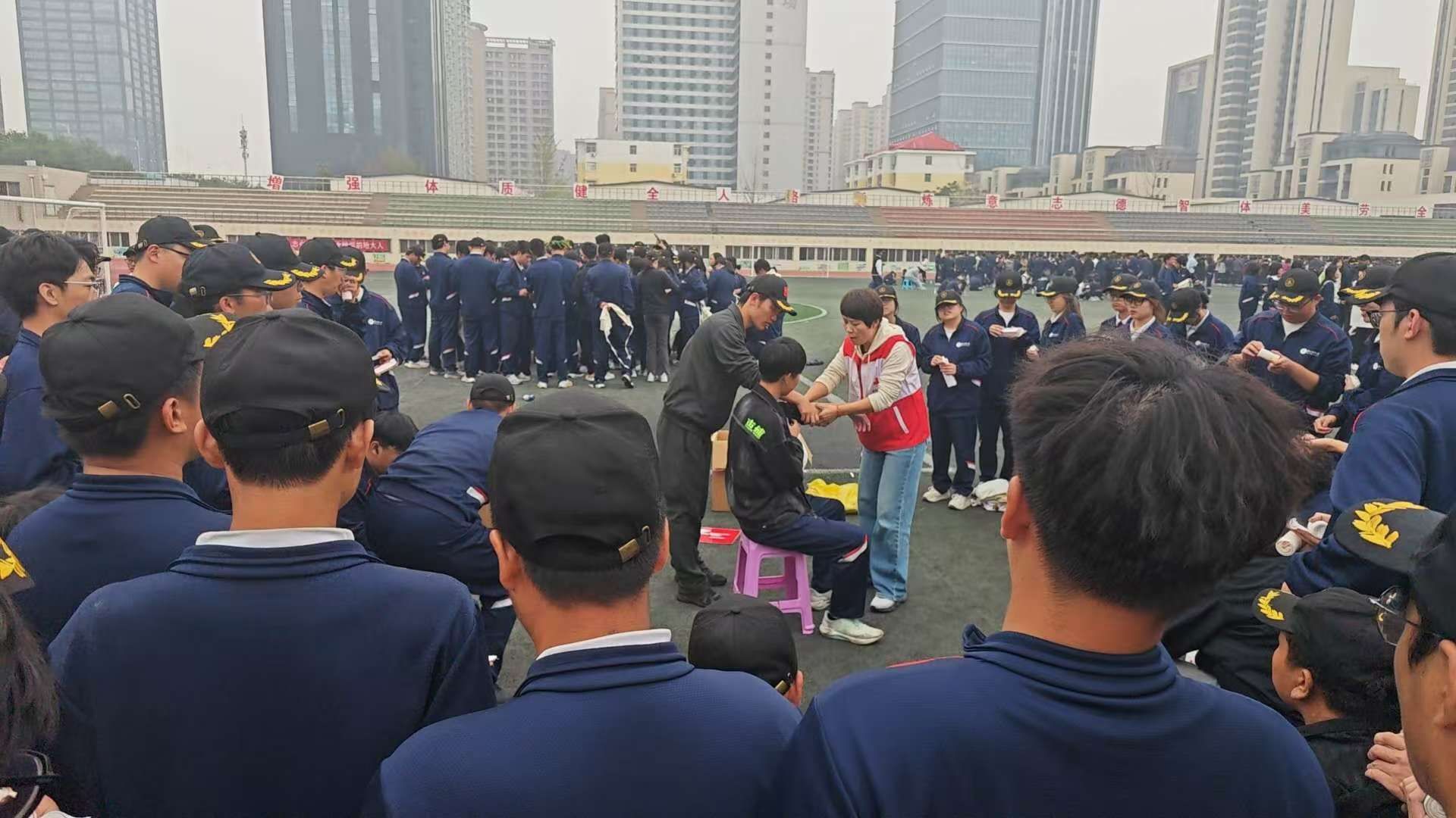 为了此项工作能够顺利开展,前期校医院新招募了20多名师资,在寒假进行了一周的集中培训。2024级新生在入学后通过网络学习了红十字运动的基本知识、现场救护目的原则、心肺复苏操作程序及要点、创伤现场救护原则与止血包扎、骨折固定等理论知识,讲授了火灾、地震、踩踏等突发事件以及休克、晕厥等常见急症的应急救护特点、要点和注意事项,交通事故、烧烫伤、中暑、动物咬伤、急性食物中毒等常见意外伤害的应急救护原则。
