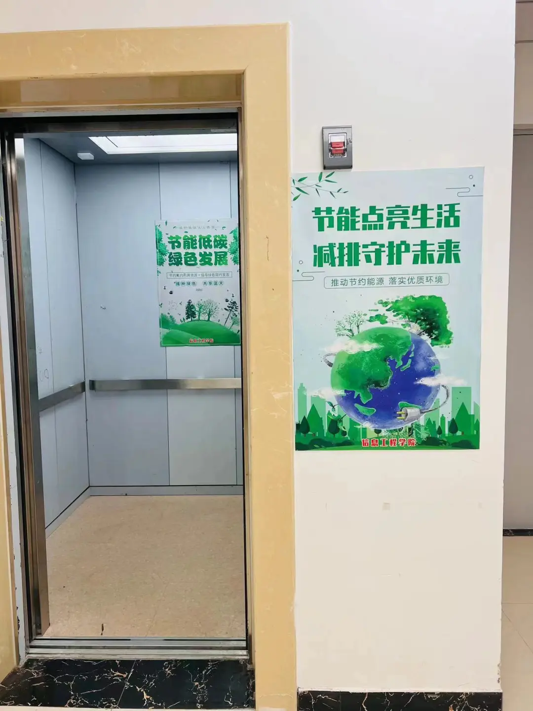 在校园中,师生们张贴着宣传节能减排和绿色生活的海报和横幅。这些色彩斑斓的宣传品如同绿色的种子,播撒在校园的每一个角落,节能减排成为校园新风尚,鼓励每一位师生加入这场绿色行动。
