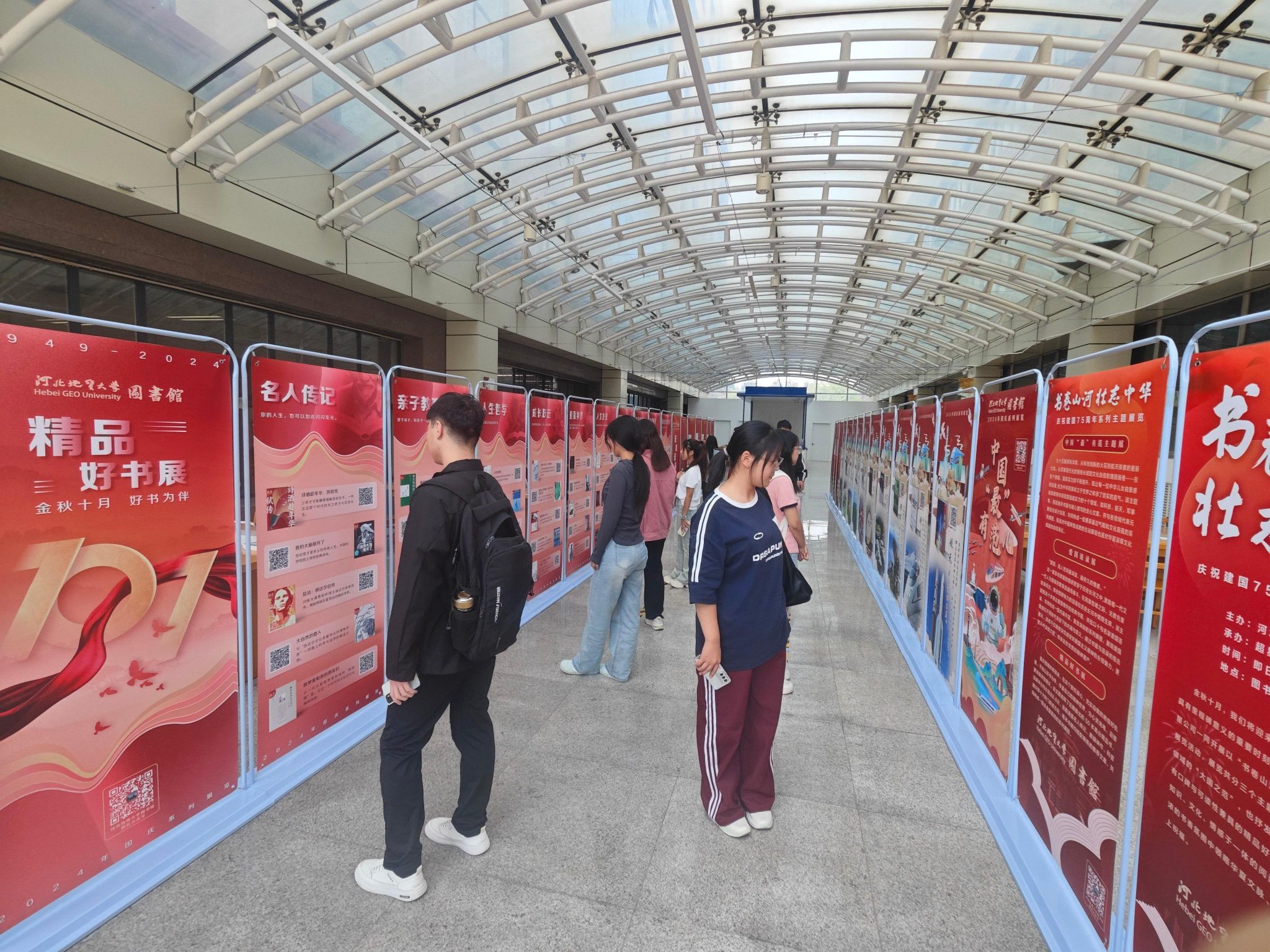 为热烈庆祝中华人民共和国成立75周年,弘扬爱国主义精神,传承历史文化精髓,英国beat365官方网站图书馆携手超星公司,于9月23日正式拉开“书卷山河 壮志中华”庆祝中华人民共和国成立75周年系列主题展览的帷幕,本次展览将持续至10月31日。展览精心策划了三个主题——“中国‘最’有范主题展”、“爱国语录展”及“精品好书展”,旨在为广大读者提供一个集知识、文化、情感于一体的阅读盛宴,让广大师生在浓浓的书香氛围中领略华夏文脉、民族精神,共同为祖国献上祝福。