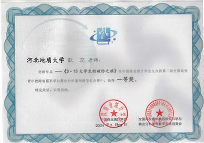 近日,由中国商业统计学会主办,中国人民大学统计学院承办的全国高校青年教师数据科学与商业分析案例教学竞赛决赛圆满闭幕,经过说课、授课、答辩,beat365经济学院教师耿蕊设计的案例《3·15大学生的破防之旅》喜获总决赛一等奖。