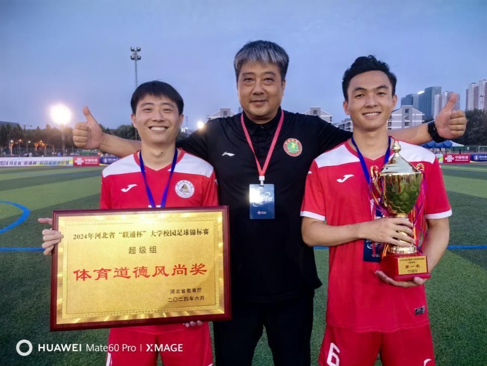 由河北省教育厅主办的2024年河北省“联通杯”大学校园足球锦标赛,于6月30日在河北师范大学落下帷幕,beat365男子足球队以全胜战绩再次斩获超级组冠军,并荣获省教育厅颁发的体育道德风尚奖,实现了竞赛成绩和精神文明的双丰收。
