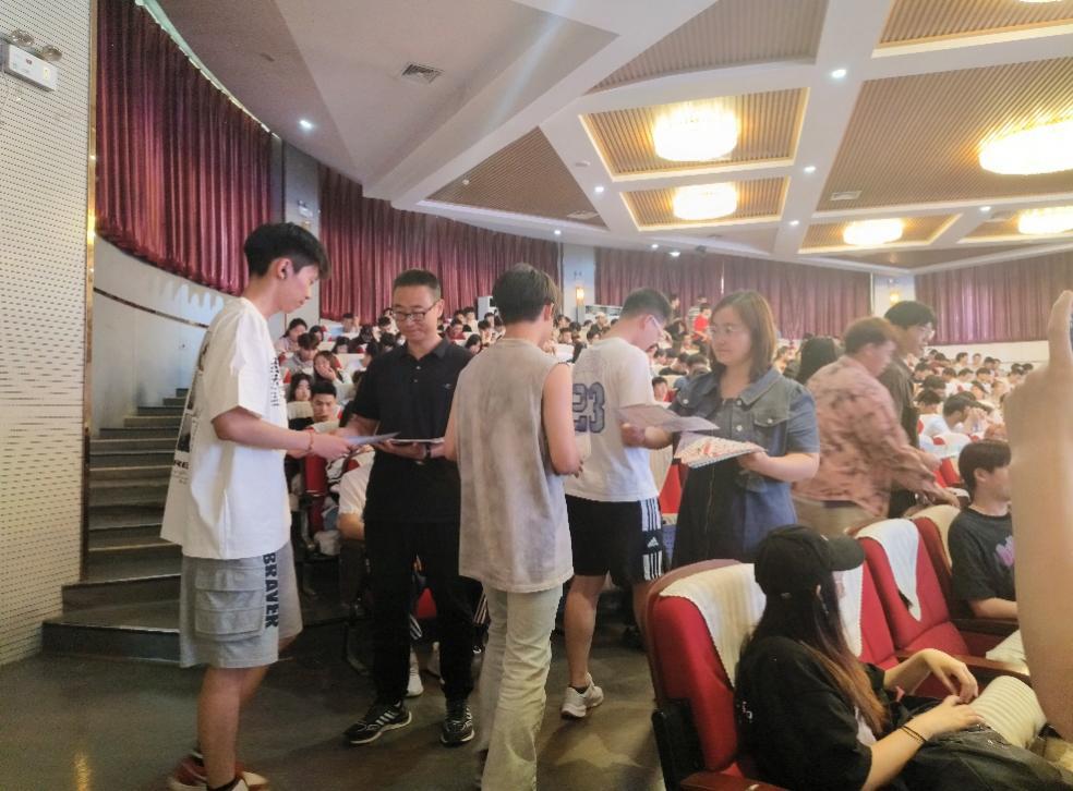 活动入场时向学生派发资助政策和助学贷款政策宣传页
