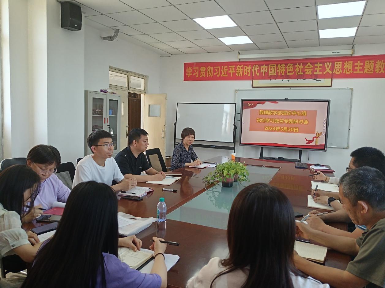 今年4月以来,按照学校部署,数理教学部党委高度重视,迅速响应。4月15日召开党纪学习教育动员会,研究谋划党纪学习教育,作出细化安排,强调要把开展党纪学习教育作为重要政治任务并取得扎实成效。4月16日党纪学习教育读书班开班,按照学纪知纪明纪守纪、党纪交流面对面、用身边事教育身边人、警示教育零距离和党纪学习教育谈体会等五个主题进行学习,学习形式包括集中学习、个人自学、集中研讨和批评与自我批评等。