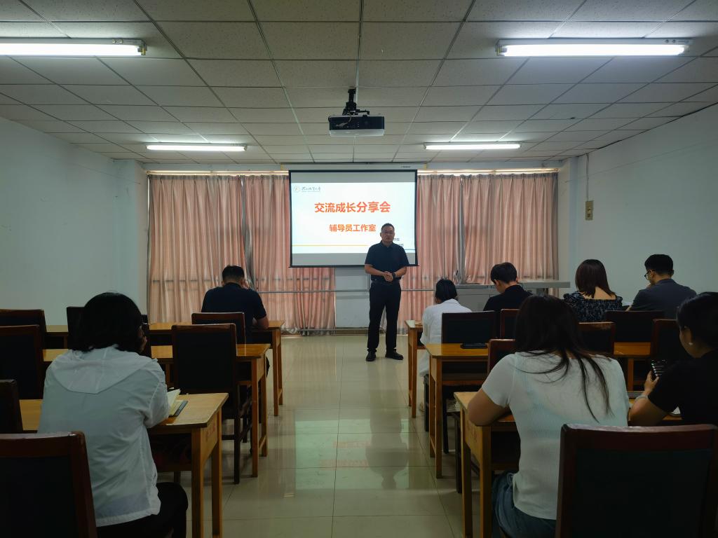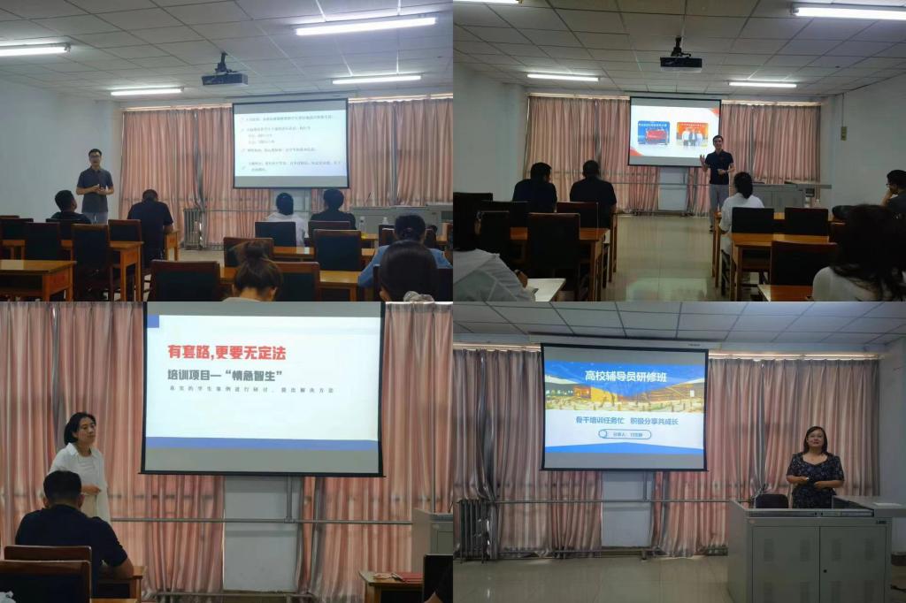 会上,赵明通过个人的成长经历,向与参会人员分享了自己的工作经验。随后,参加河北省高校骨干辅导员高级研修班的张建欣、哈木拉提·阿里木江、孙怀章和付志静四位老师,围绕辅导员工作的职责使命、辅导员工作的方式方法以及辅导员专业化、职业化建设的重点和难点等方面进行了分享。