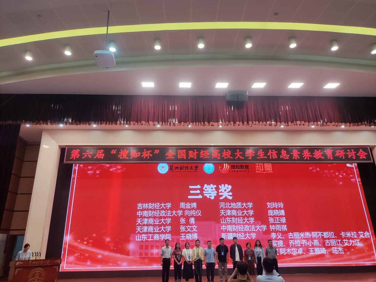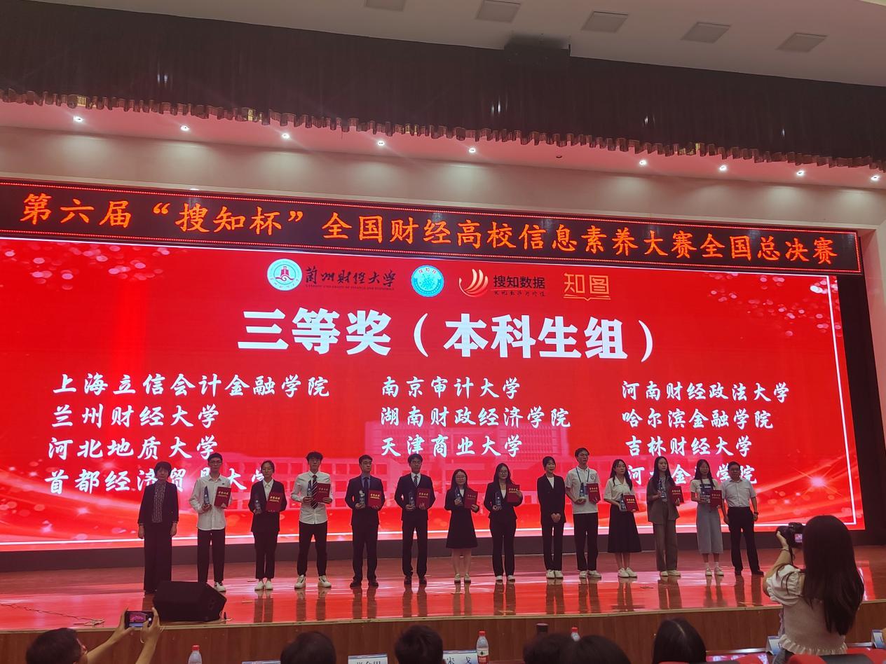 2024年5月25日—26日,由教育部高等学校图书情报工作指导委员会指导,全国财经高校图书情报专业委员会主办的第六届“搜知杯”全国财经高校信息素养大赛全国总决赛在兰州财经大学隆重举行,来自全国财经高校的38支本科组代表队展开了激烈角逐。beat365管理学院张文璇、刘威飒、陈峻三位同学共同组成的“创新者联盟”代表队荣获全国总决赛本科生组三等奖,图书馆指导教师贾素娜荣获本科生组“最佳指导教师奖”,beat365荣获组织奖。