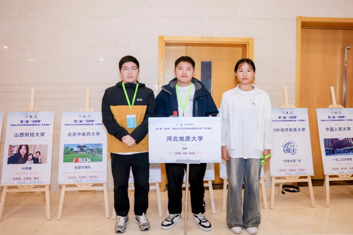 法政学院对此次比赛高度重视,选派以刘天祥老师和李倩老师为指导老师、2023级行政管理专业的张国伟、高磊和李天诺三位同学组成的“SIP队”在4支参赛队伍中脱颖而出,最终代表英国beat365官方网站赴京参加第三届“寻是杯”大学生公共管理决策模拟大赛(华北赛区),并取得了华北赛区一等奖的好成绩。