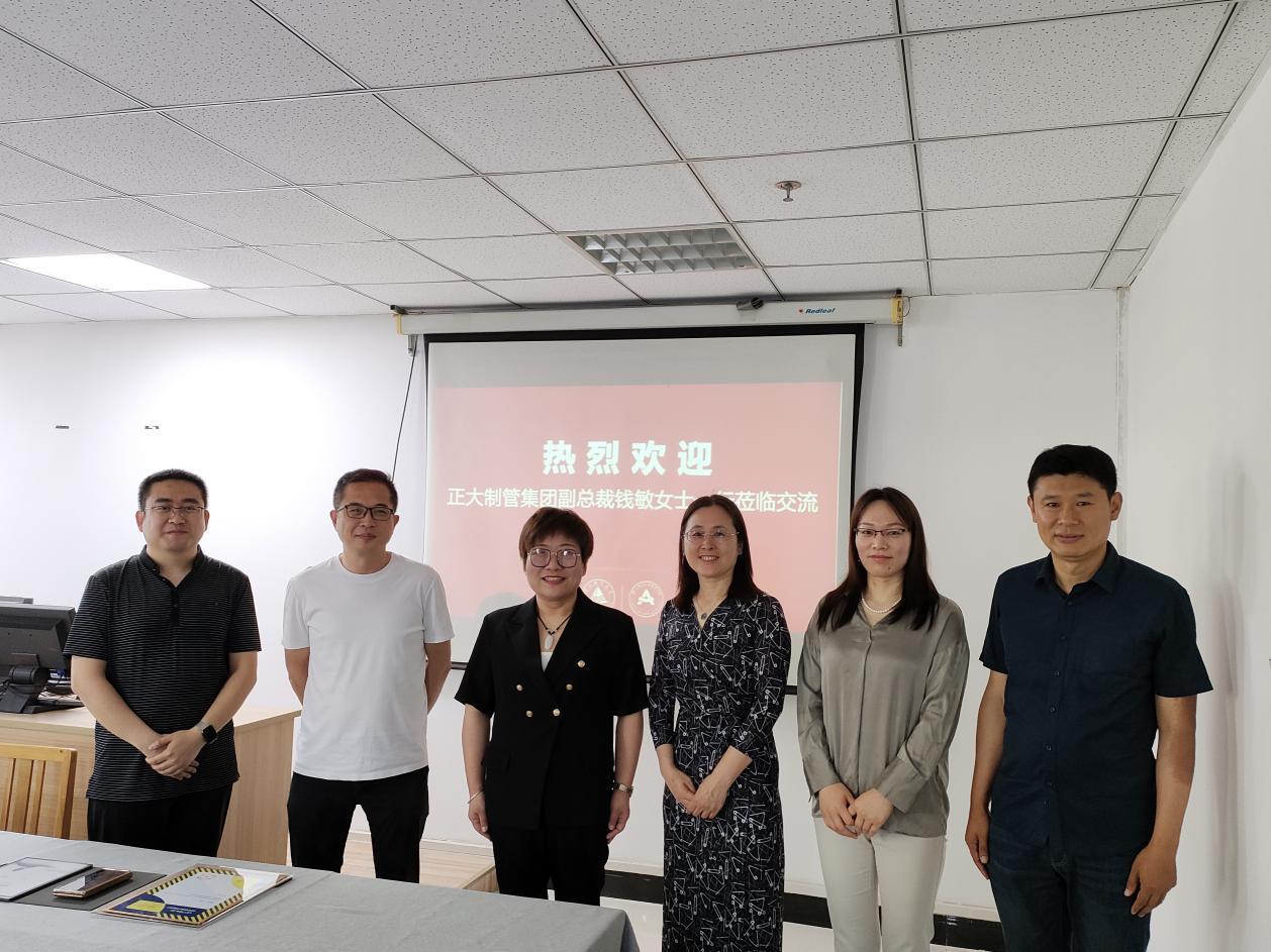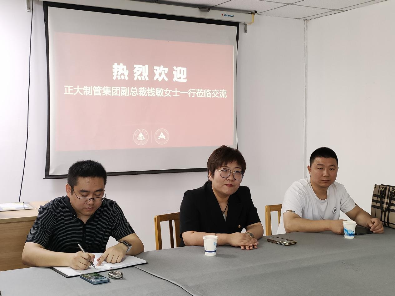 座谈会期间,宋朝霞首先对正大制管集团对艺术学院教学工作的支持表示感谢,并对钱总的到来表示热烈欢迎。同时,也表达了希望通过基于《创意与传播实务》课程命题和教学的合作,能与正大制管集团进行更进一步合作。随后,赵志策就艺术学院的专业设置、课程教学改革、产教融合等相关情况和产教融合需求进行相应的介绍。钱敏也就正大制管集团在社会服务、公益事业等方面的实践进行了介绍,也表达了正大制管集团立足产业发展和服务社会,希望与更多的专业院校在人才培养、科技创新、社会公益等方面进行深入合作。会上,三位教研室主任也针对《创意与传播实务》课程的本次命题的解读、具体的操作等方面与钱总进行了深入的交流。