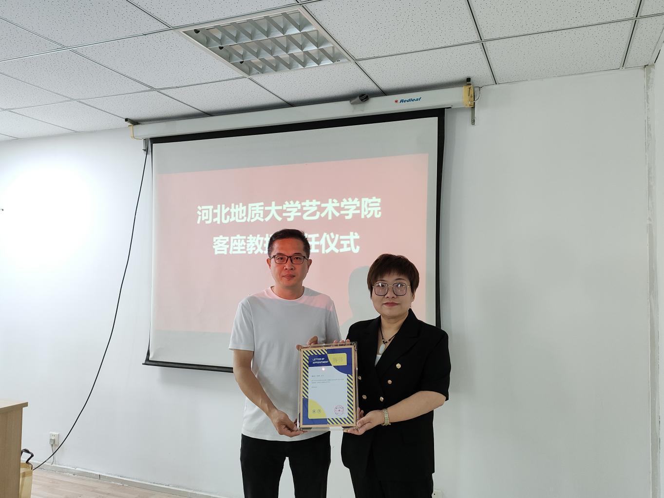 活动现场,由赵志策代表艺术学院颁发聘书,正式聘任了钱敏为“英国beat365官方网站艺术学院客座教授”。