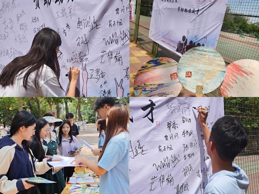 活动吸引许多同学驻足签字、踊跃参与,通过资助与诚信知识答题、成语速答、漆扇制作等环节,融知识性、思维性、趣味性于一体,激发了同学们的学习热情和求实精神,营造了“诚信为荣,失信可耻”的校园文化氛围。同学们分别在卡片和签名墙上写下诚信承诺并郑重签字,这是他们在诚信方面做出的庄严承诺,以字明志,使诚信教育入脑入心,促使学生将诚信意识转化为自觉行动,强化责任担当。