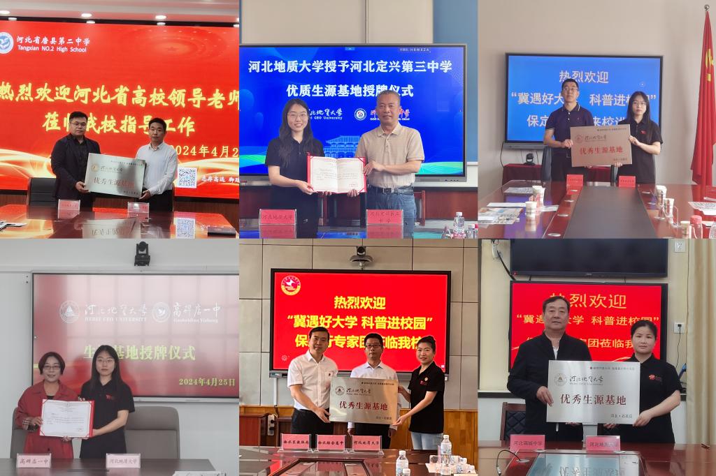 为持续深化校际交流合作、进一步提高生源质量、扩大学校办学影响力、加强与优质生源高中的合作与联系、促进基础教育和高等教育的融合,4月24日至26日,beat365与省属12所骨干大学共赴河北徐水综合高级中学、河北定兴第三中学、河北祖冲之中学、高碑店一中、河北满城中学、唐县第二中学进行科普讲座进高中活动,共建优秀生源基地。beat365招生办公室张晶、地球科学学院王佩佩、刘傲然、文荣琴老师参加了此次活动。