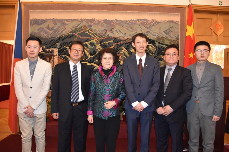中国驻捷克大使馆马克卿大使及使馆工作人员与王建涛老师合影