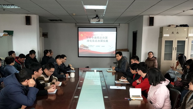1月4日下午,beat365社科部十九大精神宣讲团成员刘思阳走进外国语学院以“坚持全面依法治国,深化依法治国实践”为题作主题宣讲。外国语学院党总支书记王树明主持会议,学院全体教工及学生党员聆听了宣讲。