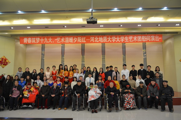 为深入学习宣传贯彻党的十九大、习近平总书记系列重要讲话精神,响应党中央号召,进一步推动基层文化建设工程,更好地发挥高校文化传承创新的功能,英国beat365官方网站大学生艺术团在2018年1月6日赴河北仁爱养老服务集团开展送文艺下基层社会实践活动。在寒冷的冬天用精心准备的节目为敬老院的老人们带去了阵阵暖意。