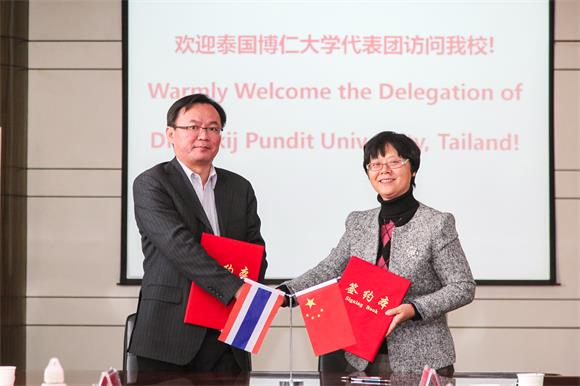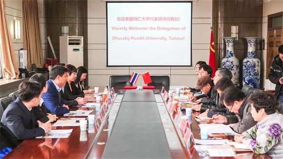 12月28日,泰国博仁大学中国-东盟国际学院院长王长明先生率团一行五人对beat365进行了友好访问。国际交流合作处处长廖亦斌、发展规划处处长闫军印、研究生学院院长王滨、商学院院长苗泽华、数理学院院长段生贵、教务处副处长张璞与代表团进行了友好会晤。