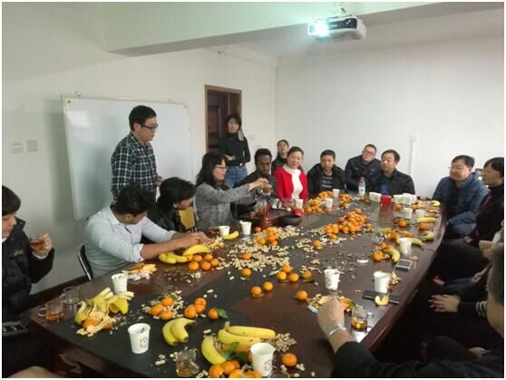 图为:外教、留学生与老师们欢聚一堂,话新年