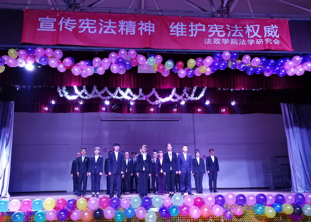 两个月来,法政学院师生举办了丰富多彩的宪法宣传活动,从不同侧面响应了新时代精神,积极为弘扬宪法精神,推进法治建设作出自己的贡献。“学宪法 讲宪法”主题演讲比赛,展现了当代大学生心中的法治梦想和责任担当;法制电影展播活动普及了“学法、知法、守法、用法”的正确导向;专家专题讲座提升了同学们关注社会问题的热情,为投身社会法治建设指明了方向;收看中央宣讲十九大精神会议、法治教育课程,使同学们更深层次的领会十九大精神,在同学们心中重塑宪法权威;北京市模拟法庭大赛获奖队员到北校区展演活动,又将学习转换为实践,通过师生的模拟庭审,培养同学们严谨、专业的法学素养。此外,法政学院师生还将对宪法、法治的宣传学习深入到司法审判中和民众生活里,通过深入社区宣传法律知识、旁听法院庭审案件,亲身感受法律人职业道德和专业素养的同时将普法宣传落实到实处,忠于宪法法律,为全面推进依法治国贡献力量。宪法日当天,学院开展了“宣传宪法精神,维护宪法权威”主题文艺汇演,精彩纷呈的节目给大家带来了视觉盛宴,庄严的宣誓环节也展现了大家对宪法至上、法治精神的崇敬。