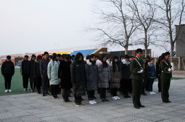 图为:北校区学生举行公祭日默哀仪式