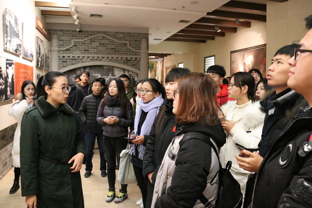 随后,同学们参观了西柏坡中国人民解放军总部旧址。作为中共中央进入北平、解放全中国的最后一个农村指挥所,它见证了新中国蓝图的诞生。在中国共产党七届二中全会的会议室旧址中,同学们重温入团誓词,忆起了他们入团时的赤诚之心,再次激发了他们的责任感和使命感;在这里,3名同学代表还紧密结合自身实际情况,带领全体学员学习了十九大报告内容,学习现场吸引了前来西柏坡参观学习的其他人员。一句"青年兴则国家兴,青年强则国家强"使同学们更加深刻地认识到自己肩上的重大责任,也使在场的其他人员陷入了深思。