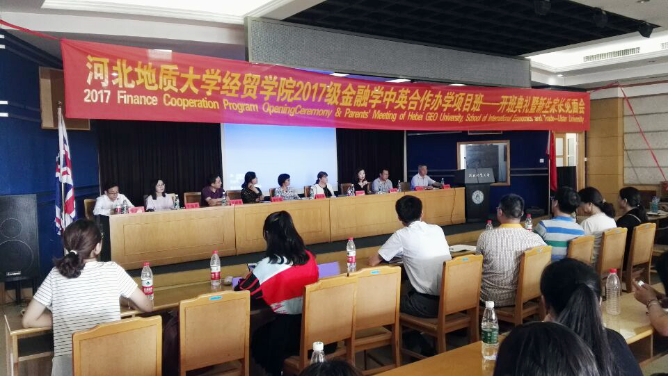 2017年9月6日上午,经贸学院2017级金融学中英合作办学项目班开班典礼暨新生家长见面会在教一楼9楼学术报告厅隆重举行。