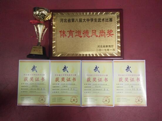 2017年1月8日-12日,由河北省教育厅主办,河北省大学生体育协会承办的河北省第八届大中学生武术比赛在河北农业大学举行,来自华北电力大学、河北大学、河北师范大学、河北经贸大学、燕山大学、华北理工大学等43所学校,528名运动员参赛,beat365武术队男、女12名运动员在陈伟英、赵海军、吴振超老师的带领下参加了本次比赛。