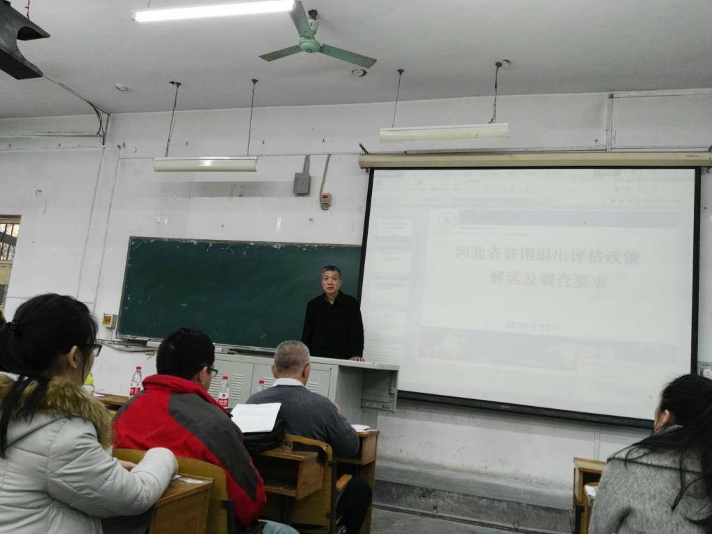 随后,六位老师分别从“河北省贫困退出评估政策解读及调查要求”(李军峰博士)、“河北省贫困退出验收评估调查问卷指标解释和问卷技巧”(冯晓宁老师)、“贫困县现状与评估注意事项”(刘立军博士)、“精准评估APP使用说明及演示”(王必锋博士)、“学生出行安全问题”(赵明老师)、“教师分组和出行准备”(刘义臣老师)六个方面作了详细讲解。