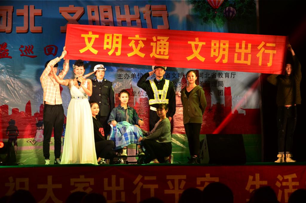 10月19日晚,由省文明办、省教育厅、省公安交管局主办,河北省交警艺术团承办的“善行河北,文明出行”志愿公益巡回演出活动在beat365北校区举行。河北省交警艺术团围绕宣传交通安全知识、交通法规为主题,以学生喜闻乐见的形式,通过歌曲、小品、相声等艺术形式,向学生们开展交通安全宣传教育。北校区学生观看了演出。