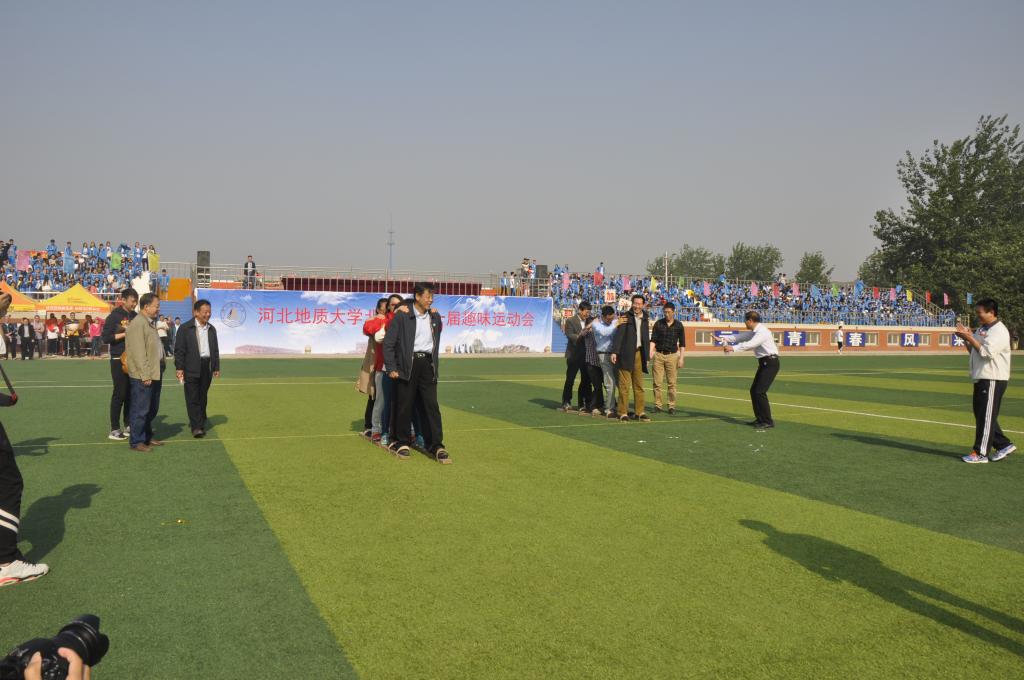 在运动员代表勘查技术与工程学院王忠顺同学和裁判员代表周峰老师宣誓后,精彩比赛正式开始。本次运动会比赛项目有同舟共济、山路弯弯、足球射门、十人十一足、滚轮胎接力、3分钟跳大绳、袋鼠跳接力、沙包投掷、接力跑、篮球定点投篮等10个项目,全部都是团体项目,800多名师生踊跃参加。比赛开始后,校领导和学院负责老师也乐在其中,参加了“同舟共济”比赛,引得在场师生掌声不断,随后各个项目相继展开,参赛师生气氛活跃,大显身手。