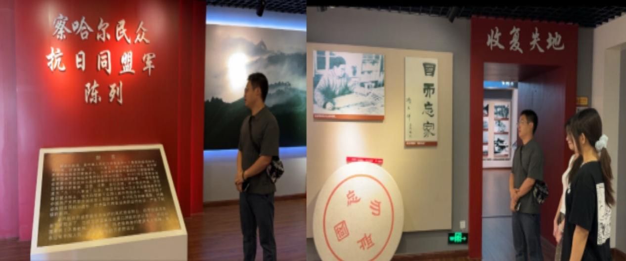 参观纪念馆,重温“全民抗战”热血史诗。上午9时,实践小分队走进察哈尔民众抗日同盟纪念馆,馆内“民族危难”“抗日烽火”“收复失地”“绝地抗争”“浩气长存”五个展区生动地再现了察哈尔民众抗日同盟军在艰苦卓绝的环境下,奋勇抗击日本侵略者的壮丽篇章。刘昶江老师沿着清晰的时间脉络,为同学们详细讲述了察哈尔抗日同盟军当年英勇抗击日寇、收复失地的艰辛历程。队员们凝视着馆内一件件历经战火的展品、一张张定格历史的图片、一幅幅珍贵影像和逼真的场景复原,被抗日同盟军将士们顽强拼搏、舍生忘死的精神深深打动。他们纷纷表示,这些历史见证让自己对抗日战争的艰辛历程有了更深刻的认识,将更加珍惜今天来之不易的幸福生活,这种精神将永远激励他们前行。