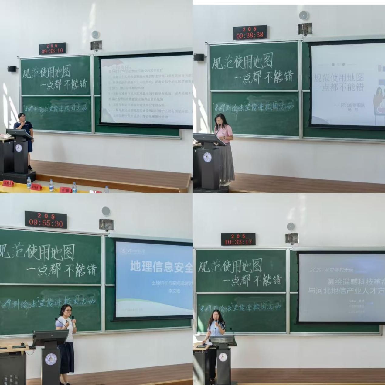 在主题报告环节,来自测绘单位的专家与beat365的教师先后进行分享。河北省第三测绘院杨娟芳以《加强测绘法制宣传,增强测绘法治意识》为题,结合实际案例解读测绘法律法规要点,引导与会者树立依法测绘、守法用图的意识;河北省制图院杨欣围绕《规范使用地图,一点都不能错》,从地图编制、审核、使用等环节入手,详解规范用图的重要性与实操要点,让“国家版图,一点都不能少”的理念深入人心;土地科学与空间规划学院教师李文彬聚焦《地理信息安全守护》,剖析当前地理信息安全面临的挑战与防护措施,为保障国家地理信息安全提供专业指引;河北地信集团李烨则以《从星空到大地:测绘遥感科技革命与河北地信产业人才方阵构建》为主题,回顾测绘遥感技术的发展历程,展望产业未来趋势,并结合企业实践提出校企协同培养高素质测绘人才的路径,为行业人才队伍建设注入新思路。