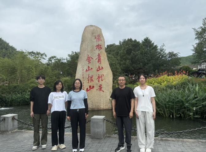 而在安吉余村,22级环境设计专业师生看到了“绿水青山就是金山银山”理念下的生态蜕变。站在观景台上俯瞰余村,昔日的矿山已变为郁郁苍苍的竹海,废弃的厂房蜕身为“两山”理论纪念馆。馆内陈列的老照片、生产工具与转型规划图形成强烈视觉冲击,从“矿山疮疤”到“生态明珠”,余村的转型让学生们思考:地质工作不仅是找矿,更是守护家园。“我们要让更多人知道,地质精神里不仅有开拓,更有守护。”学生党员的话,道出了新一代艺术学子对红色地质精神的时代解读。